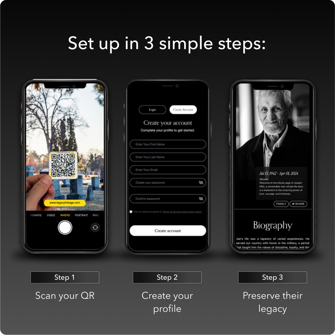 Honor your loved ones with a custom memorial plaque featuring a QR code that links to a personalized digital tribute page. This innovative solution allows family and friends to share memories, photos, and videos, creating an everlasting digital legacy. Perfect for cemeteries, gardens, or home displays, our memorial QR codes ensure that memories are preserved and easily accessible. Start preserving your family's history today with our secure and interactive tribute pages.